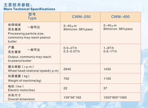 超微磨機具有良好的研磨、破碎性能。該機 用途廣泛,適用于食品、油漆、塑料色漿、各種涂料、 染料等較難加工物料的微細加工,尤其適用于花生醬、 辣椒醬、菜籽、葵花籽、芥末、可可豆、杏仁等含油量 較高物料的加工。其特點是產(chǎn)量高、粒度細、溫升小。 工作原理 該機由高速旋轉(zhuǎn)的動磨片和定磨片組成,動磨片和定磨片之間的間隙,可通過微調(diào)系統(tǒng)根據(jù)所需要的細度指標任意調(diào)節(jié),被加工物料從料斗進入磨片之間的工作間隙,在離心力的作用下進入相對運動的動磨片和定磨片之間,通過其可變磨片間隙,經(jīng)高速旋轉(zhuǎn)磨片產(chǎn)生的強大離心力渦流磨片的剪切、研磨。從而達到對物料的細化目的。 結(jié)構特點 具有結(jié)構緊湊,操作、維修、清洗方便等特點。 與物料接觸的零部件均采用優(yōu)質(zhì)不銹鋼材料。 動、靜磨片采用特殊的磨粒和粘合劑制造,具有高強度、耐腐蝕,根據(jù)加工物料的不同,更換不同種類的磨片。 該機裝有精確的磨片間隙微調(diào)系統(tǒng),操作靈活、準確、方便可靠。 該機配有循環(huán)式水冷卻系統(tǒng),可以有效地起到物料溫室控制作用。 |